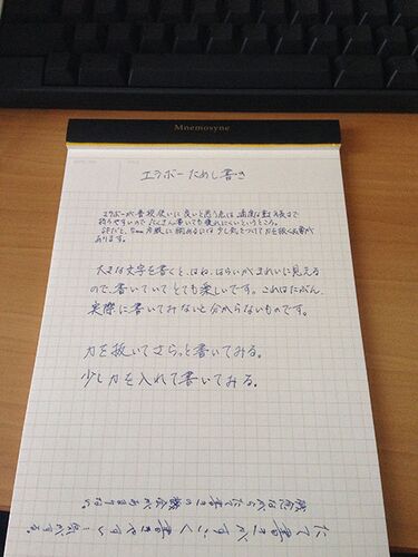 最近エラボー記事の閲覧が多いようなので、せっかくだから感想だけでなく実際書いてみたものを上げて置こうと思います。 エラボーの購入で迷ってる人はきっと、本体の見た目よりも書き味とか筆致重視だと思うので。 ↓購入時の記事 http://nil-fell.hatenablo…